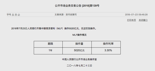 7月23日,中國央行開展5020億元一年期的中期借貸便利大額(MLF)操作,利率3.30%與上次持平。今日有1700億元7天逆回購到期。