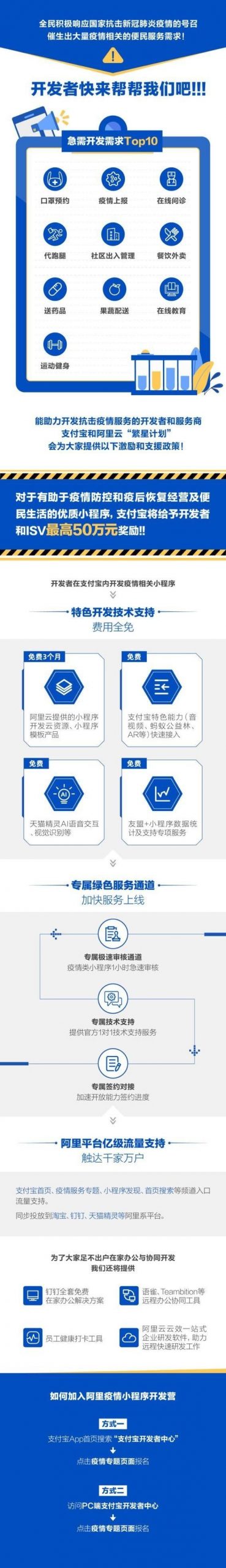 2月7日消息,基於對用戶、政府、企事業單位抗疫服務需求的緊缺情況調查,支付寶面向社會各界開發者發布“10大疫情期最急需服務開發清單”,號召更多開發者投入進來開發更多服務,解決社會問題。據了解,清單涵蓋了口罩預約、疫情上報、社區出入管理、代跑腿、餐飲外賣等疫情防護及便民生活類服務。