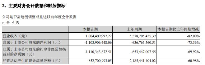 鳳凰網財經訊8月29日,樂視網發布半年報稱,上半年實現營業收入10億元,同比下降82%;歸屬上市公司股東凈利潤為-11.04億元,同比下降73.36%。