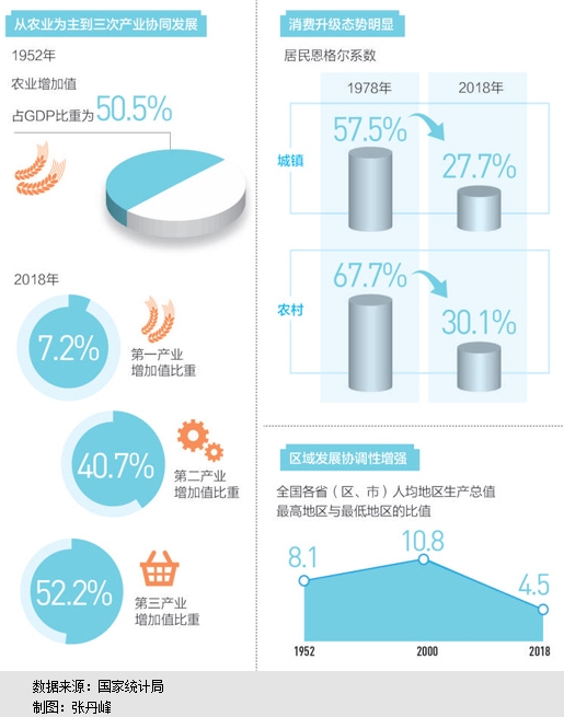 國家統計局日前發布《新中國成立70周年經濟社會發展成就系列報告》显示,我國經濟結構發生深刻變化,產業、需求、區域結構不斷優化,發展協調性顯著增強。